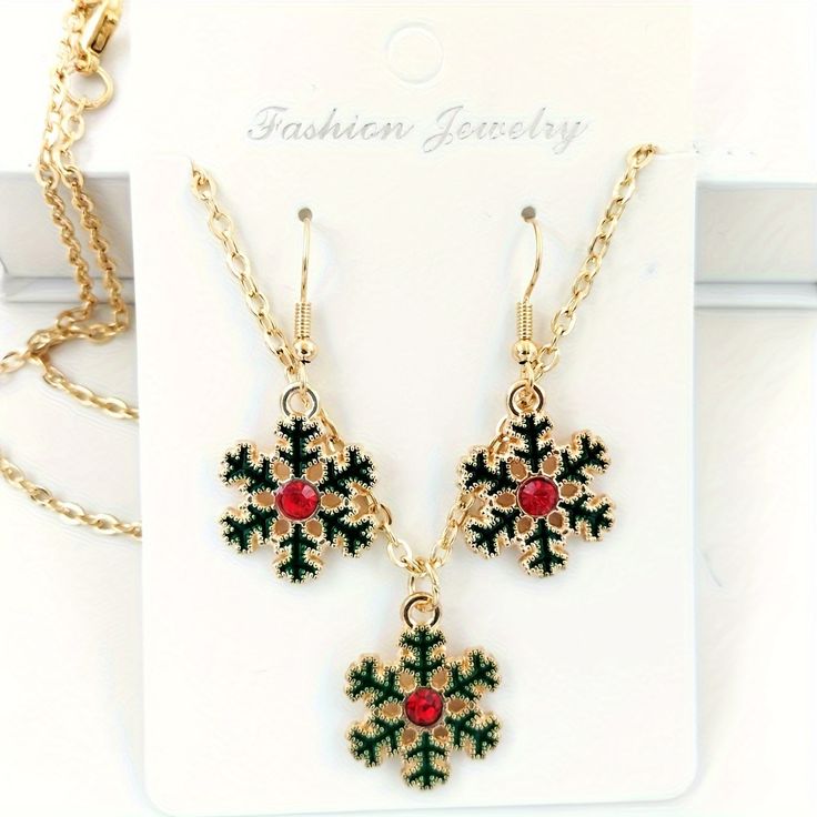A touch of winter sparkle with a hint of festive charm — the Holly Snowflake Christmas Jewelry Set features a beautifully detailed snowflake pendant paired with matching earrings. Accented with rich green enamel and a bold red centre stone, this set captures the joyful spirit of Christmas in a delicate, wearable form. Perfect for holiday parties, cozy celebrations, and gifting moments that feel truly magical.