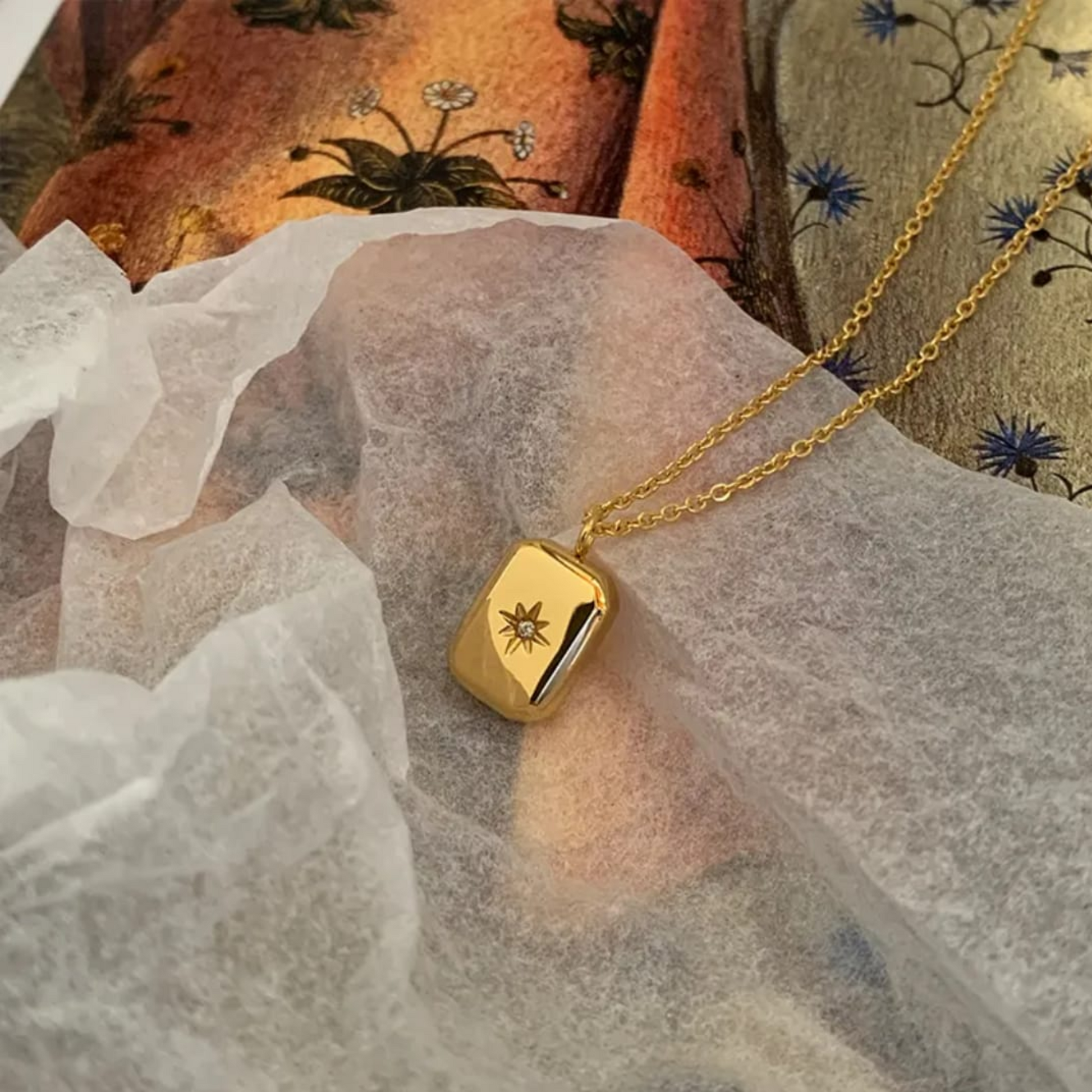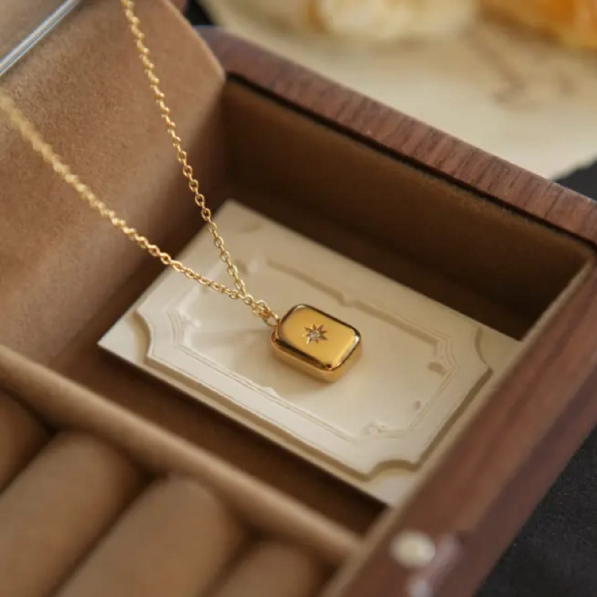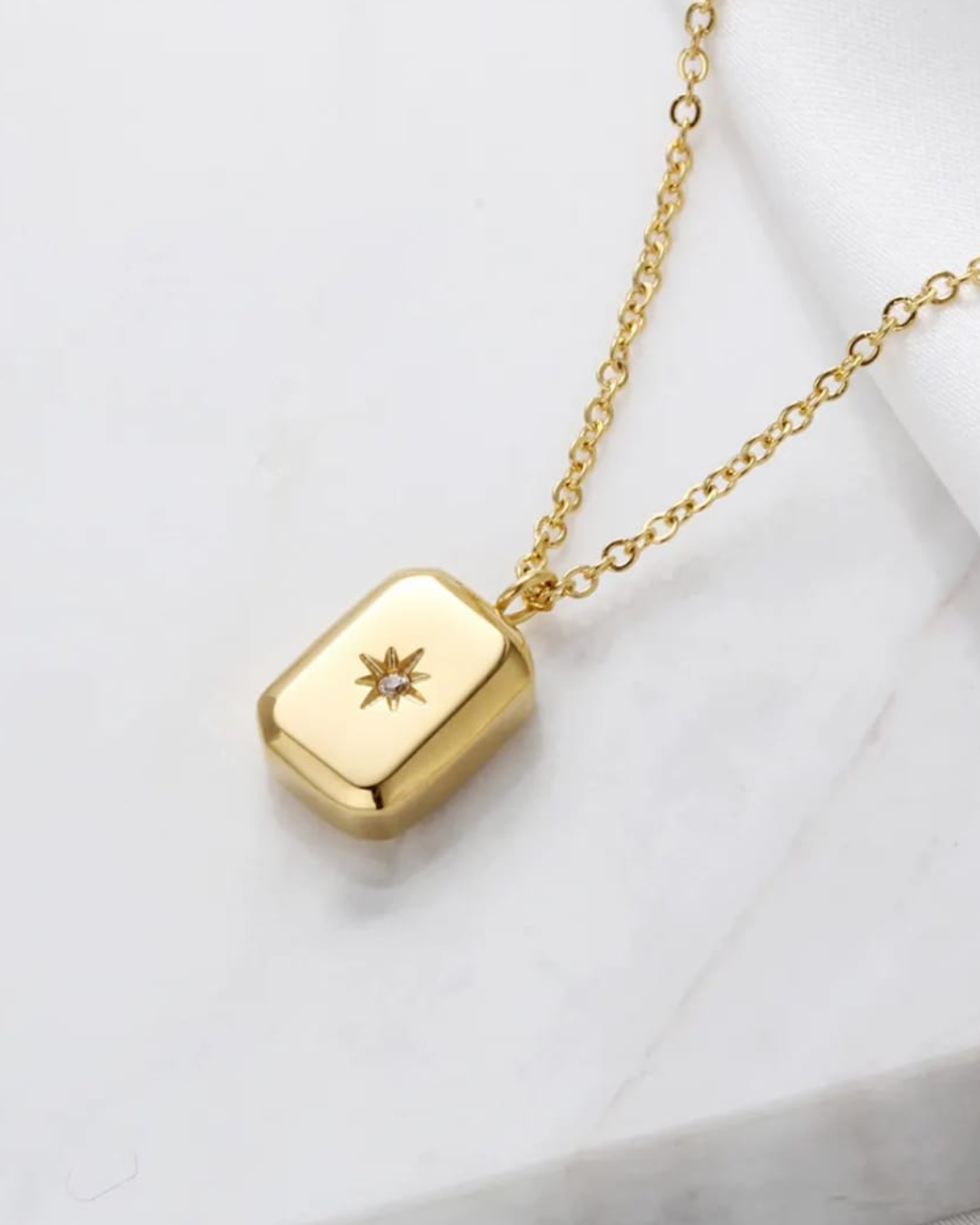 Minimal, meaningful, and designed for everyday elegance — the Celestial Glow Charm Necklace is a demi-fine jewellery piece crafted to balance luxury with longevity. Featuring a smooth rectangular gold charm accented with a delicate star-set crystal, this necklace adds a quiet sparkle that feels personal and refined. Made to be worn daily, it brings effortless shine without ever feeling loud.